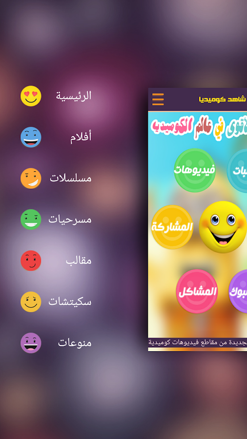 التطبيق اسمه شاهد كوميديا ، ما يجعلني اشارك معكم هدا التطبيق هو انه يتوفر على عدة أقسام منها : المسلسلات - الأفلام - المسرحيات - السكيتشات - المقالب و الكاميرا الخفية - قسم المنوعات وبداخله قسم كوميديا أطفال - كوميديا حيوانات - كوميديا رياضية - مواقف كوميديا مضحكة - تقليد كوميدي - منوعات كومدية .